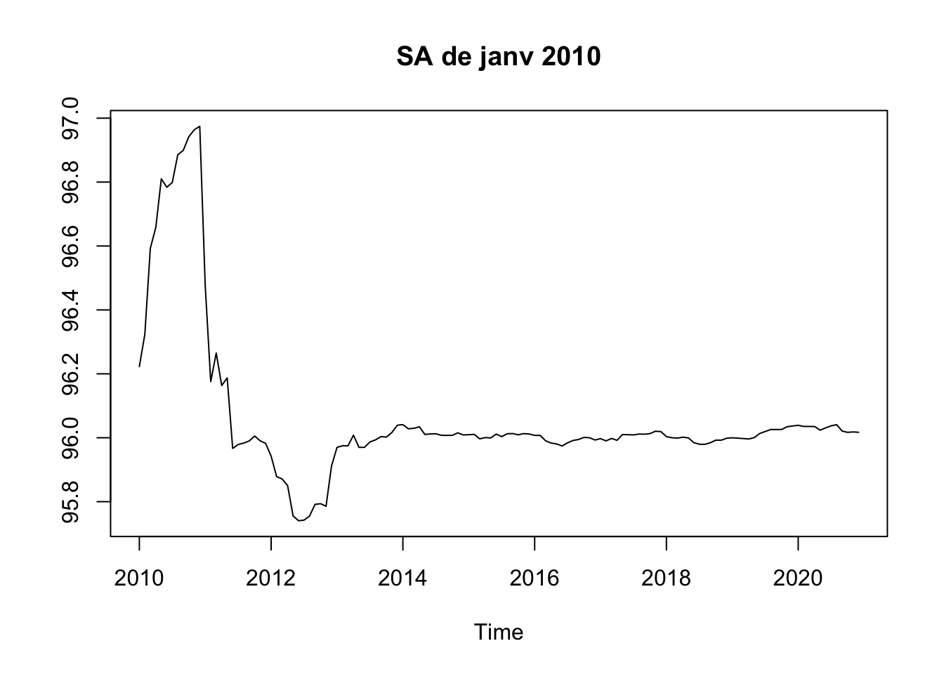 window(sa, start = 2005, end = 2005) # Pour ne récupérer que la valeur en 2005