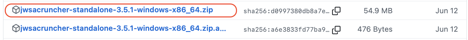 Les version 3.0.0 et plus de JDemetra+ et du JWSACruncher sont disponibles ici : https://github.com/jdemetra/jdplus-main/releases. Chaque version possède un installateur comprenant directement une version portable de Java (versions “standalone”) : c’est l’approche que nous recommandons pour éviter de télécharger Java de manière indépendante et de faire la configuration. Dans le cadre de la version 3.5.1, la fichier du JWSACruncher à télécharger sous Windows est jwsacruncher-standalone-3.5.1-osx-x86_64.zip. Pour le trouver, une fois sur la page GitHub, il faut cliquer sur le lien Show all assets :
